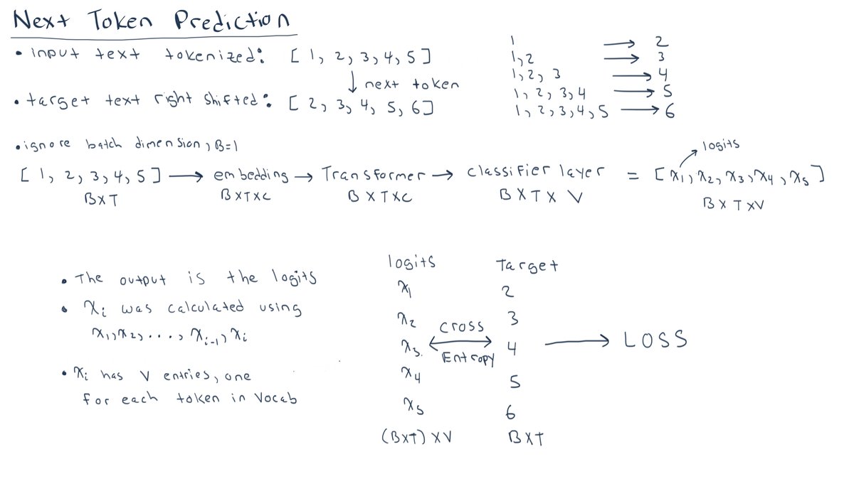 (B, T).(B, T) and is the input sequence, right shifted.dataset = load_dataset("roneneldan/TinyStories")["train"]