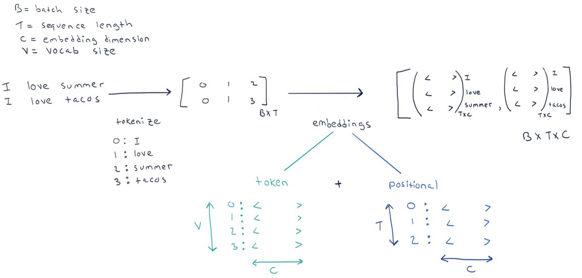 x = token_embeddings + positional_embeddings # (B, T, C)
