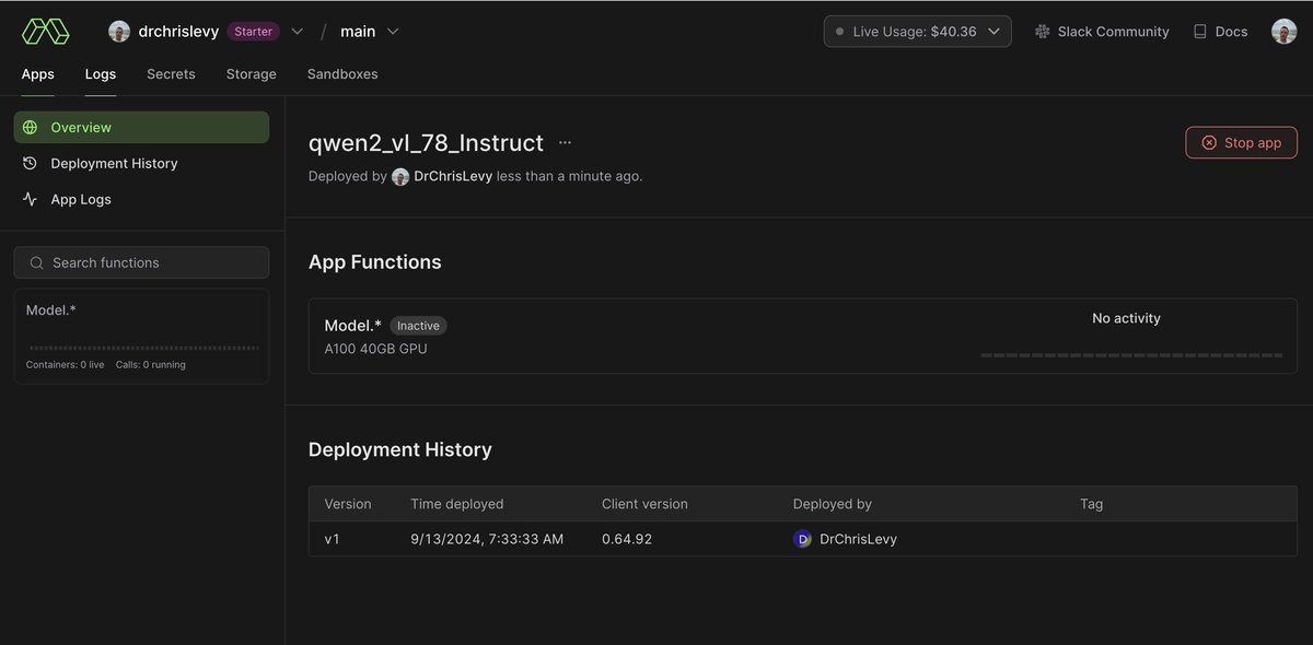 In order to run this code, we first need to deploy the Qwen2-VL model/app container: