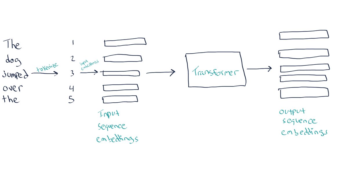 The input to the transformer layers is a sequence of embeddings. In the case of text inputs, the input first gets converted into a sequence of tokens. Then each token is converted into an embedding vector.